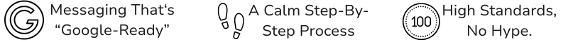We clarify what you do, who you help, what you want to be known for, and how to communicate it clearly. You’ll leave with messaging guidance and a practical roadmap for your website and online presence.